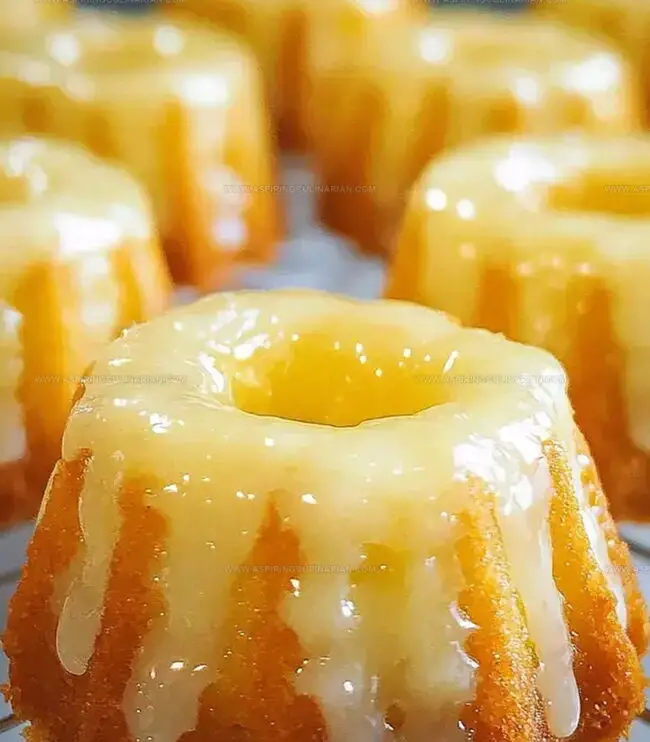 Zesty mini lemon bundt cakes deliver sunshine on a plate, perfectly balancing tangy citrus with sweet, tender crumb. Elegant dessert lovers will savor these delightful personal-sized treats that promise pure pleasure in every delicate bite.