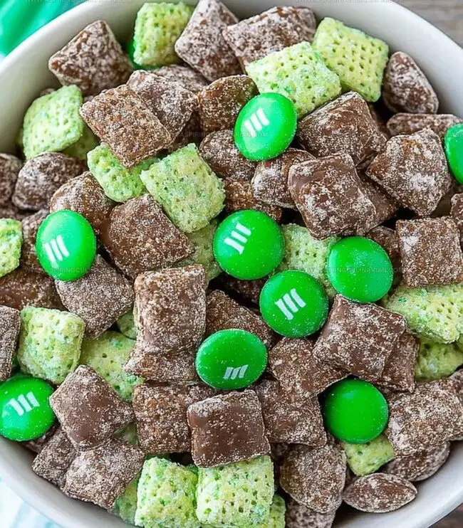 Irresistible mint chocolate muddy buddies bring a cool twist to classic snack mix, blending rich chocolate and refreshing mint flavors. Crunchy cereal coated in smooth chocolate and powdered sugar creates an addictive treat you won’t be able to stop munching.