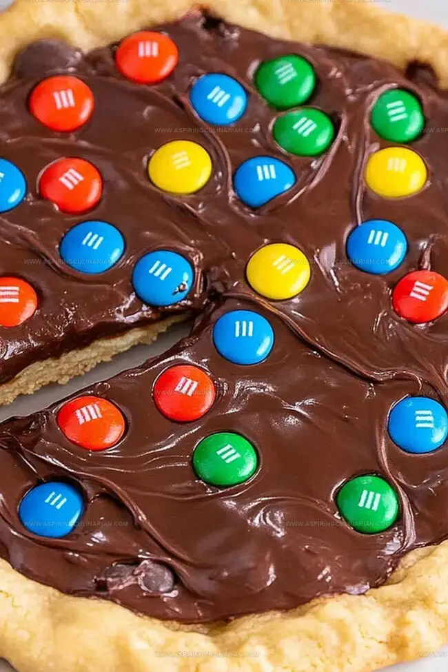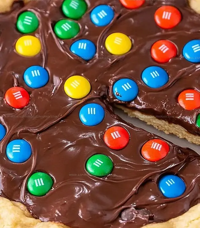 Sweet meets savory in this delightful M&M cookie pizza that blends classic dessert charm with unexpected creativity.