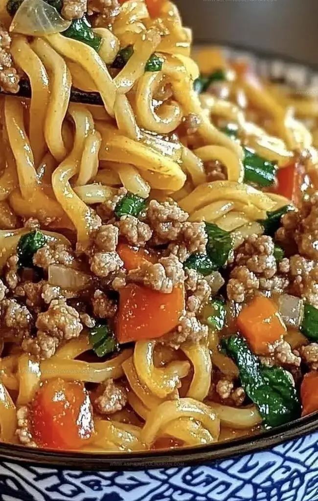 Comfort meets adventure in these mouthwatering Mongolian ground beef noodles that dance between bold flavors and familiar warmth.