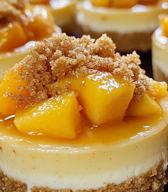 Creamy peach cobbler mini cheesecakes blend Southern comfort with classic New York-style indulgence. Sweet peach compote nestles atop a buttery graham cracker crust, crowned with silky cheesecake that promises pure dessert bliss for weekend bakers.
