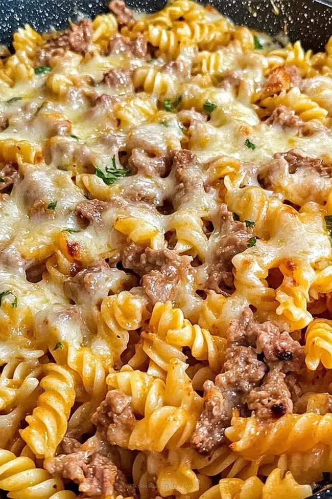 Melted cheese and tender beef come together in this mouthwatering Philly cheesesteak pasta that will make your taste buds dance with joy.