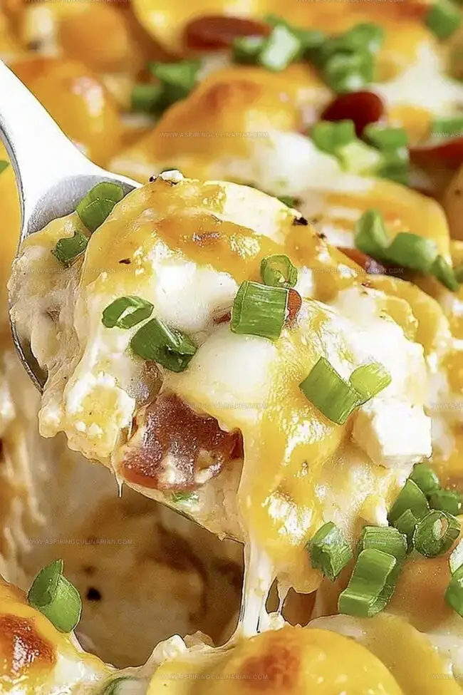 - Remove from oven and garnish with remaining green onions, creating a fresh, vibrant finish to the comforting casserole.