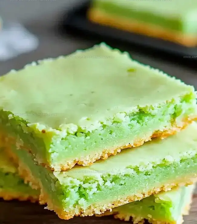 Soft, chewy cookies infused with vibrant pistachio pudding mix create a delightful twist on classic dessert bars.