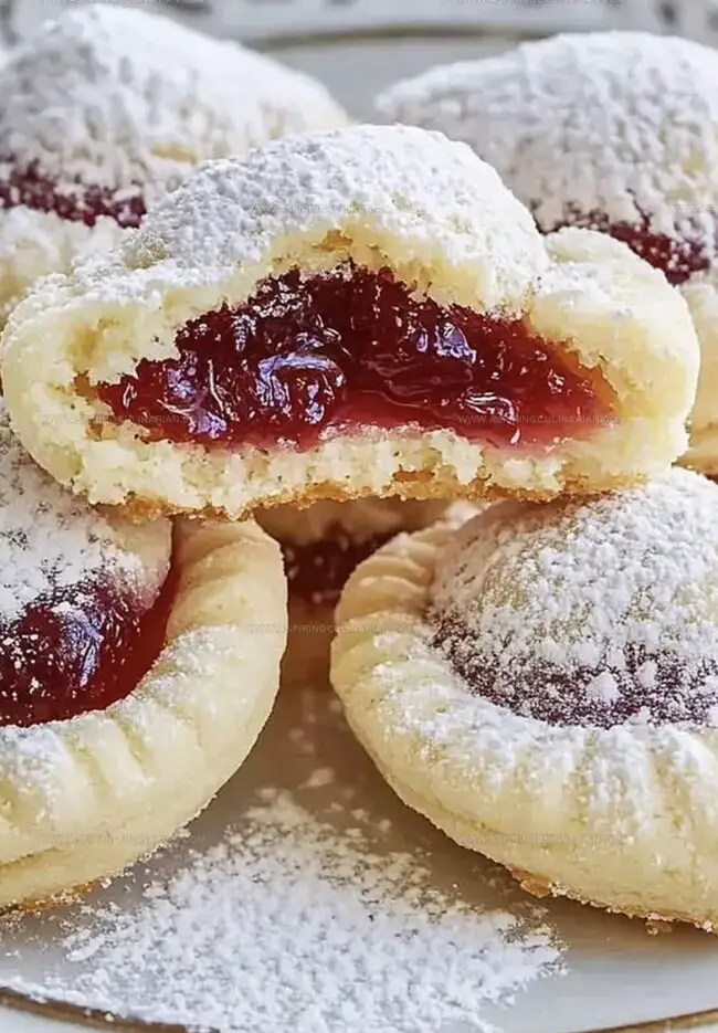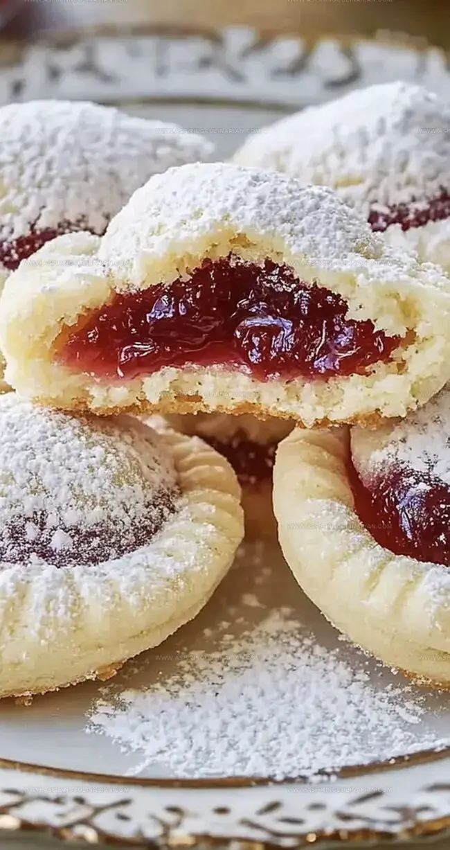 Dust generously with powdered sugar, creating a delicate, snow-like coating that makes these cookies absolutely irresistible.