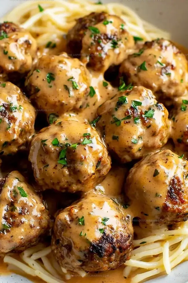 - Carefully return meatballs to the skillet, nestling them into the creamy sauce.