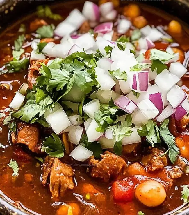 Tender meat and hominy simmer together in a rich, deeply seasoned broth that warms every sense.
