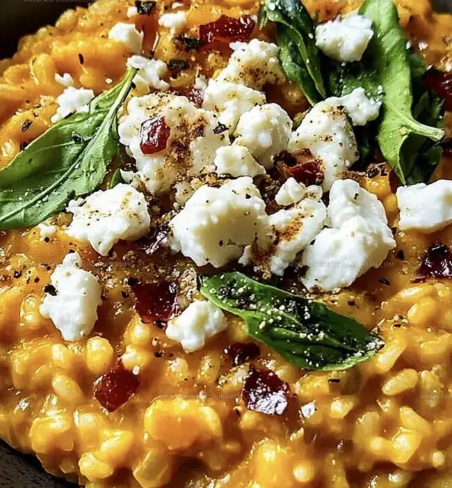 Rich arborio rice absorbs golden pumpkin puree, creating a luxurious base that whispers of harvest warmth.