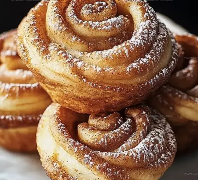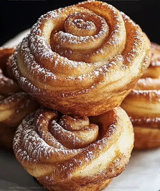 - Complete the dessert by delicately dusting the cruffins with a light layer of powdered sugar, adding a final touch of sweetness.