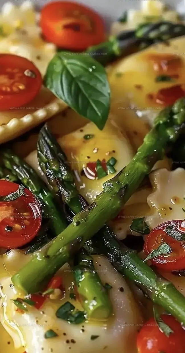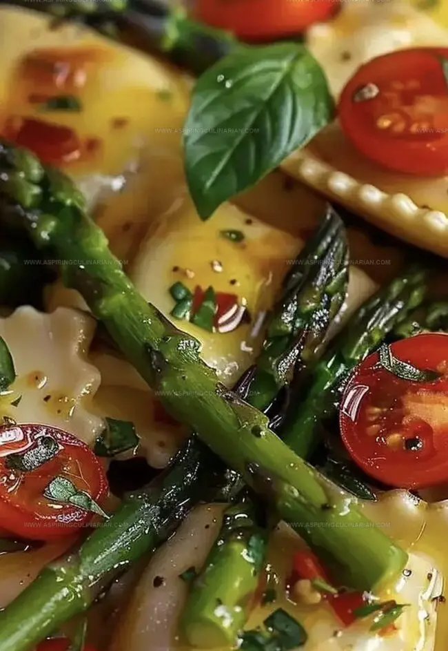 Ravioli With Tomatoes, Asparagus, Garlic, And Herbs Recipe