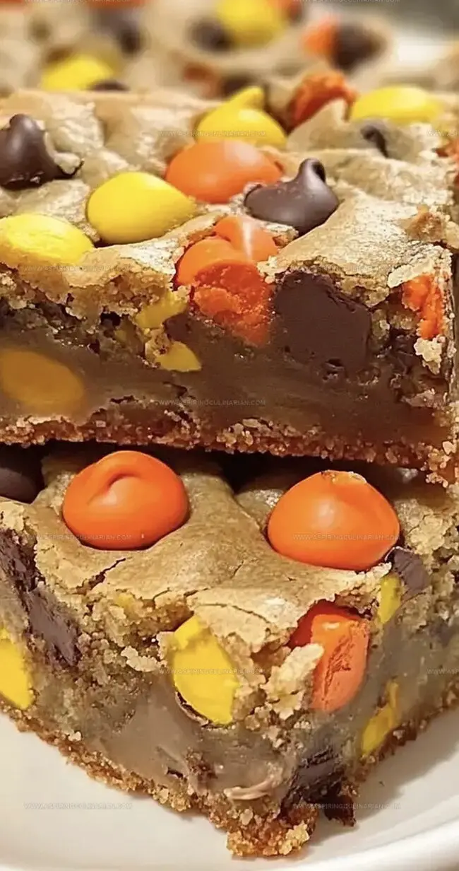 Heavenly Reeses Pieces Chocolate Chip Cookie Bars Recipe