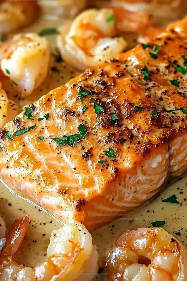 - Gently return cooked salmon and shrimp to the creamy sauce, delicately coating each piece to ensure maximum flavor absorption.