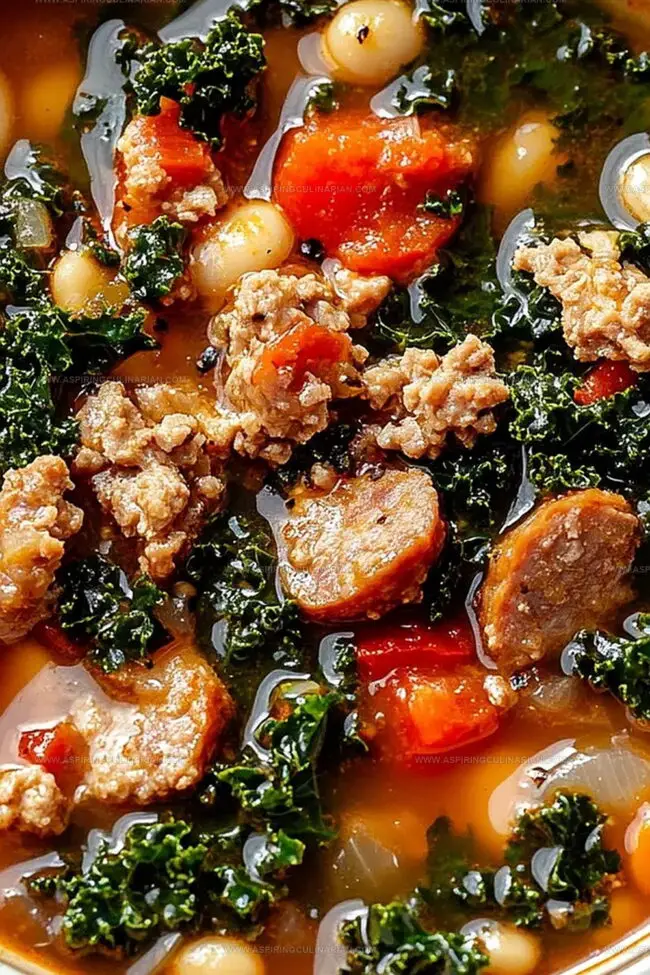 Tender kale leaves dance with spicy Italian sausage in a rich, velvety broth that promises pure satisfaction.