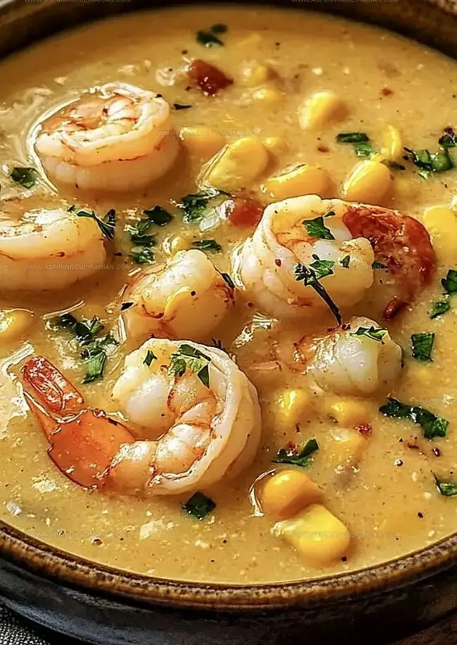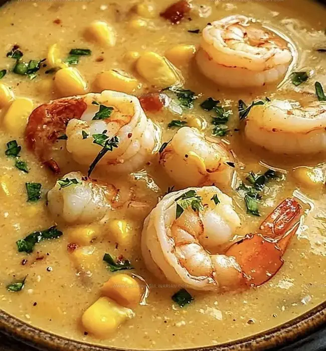 Tender shrimp swim through velvety corn-infused broth, promising warmth and satisfaction.