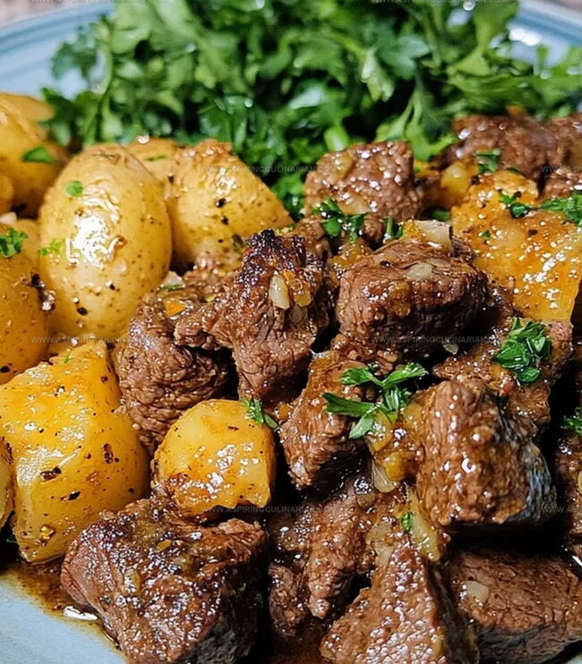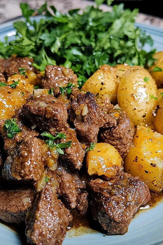 Tender chunks of beef dance with golden potatoes in this mouthwatering slow cooker garlic butter steak bites recipe that promises comfort in every single bite.