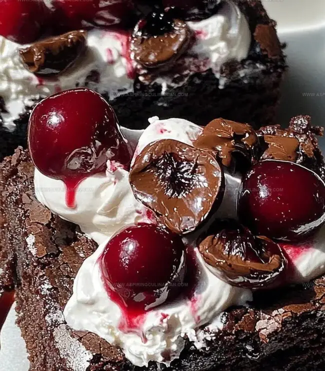 Black Forest Brownies combine rich chocolate brownie base with classic Black Forest cake elements like fresh cherries, cherry juice, and optional whipped cream, creating a decadent dessert that merges brownie and cake traditions.