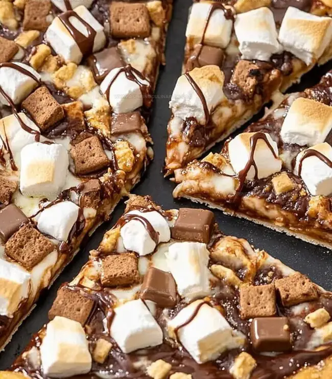 Campfire memories melt into this irresistible s’mores pizza, blending graham cracker crust with gooey chocolate and marshmallow magic. Sweet comfort wraps you in nostalgic flavors, promising pure dessert bliss that sparks joy with each indulgent slice.