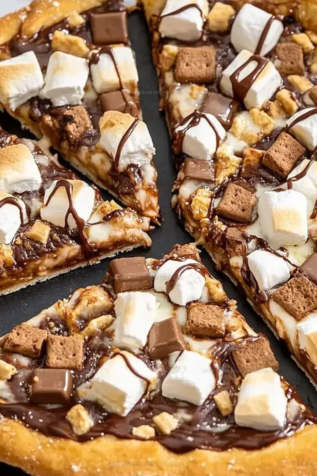 - Garnish pizza with fragmented Hershey bar pieces and crumbled graham cracker chunks for final textural and flavor enhancement.