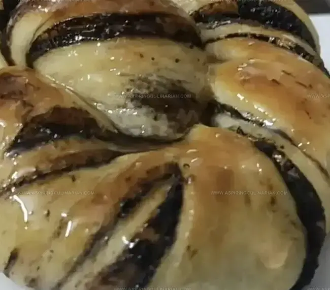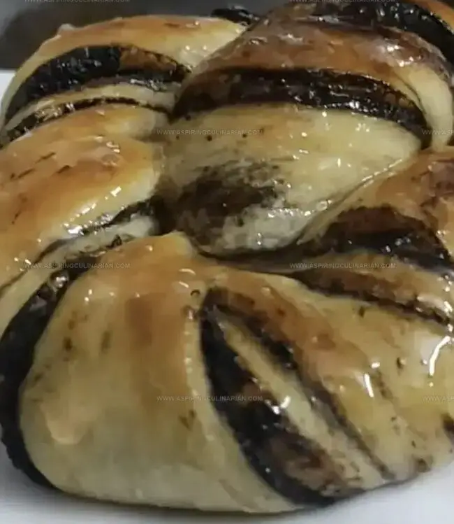 - Distribute chocolate-cinnamon filling uniformly across dough’s surface, leaving minimal gaps for consistent flavor distribution.