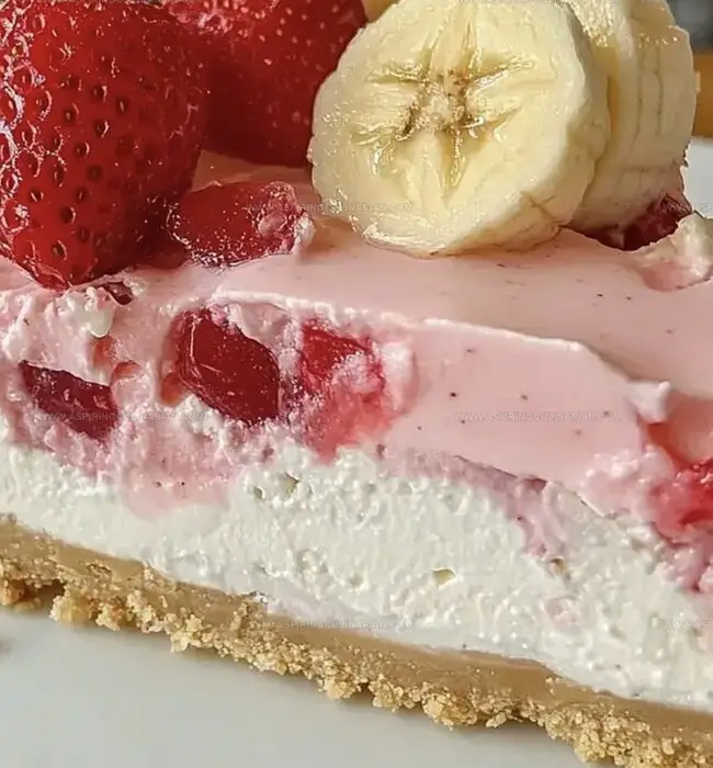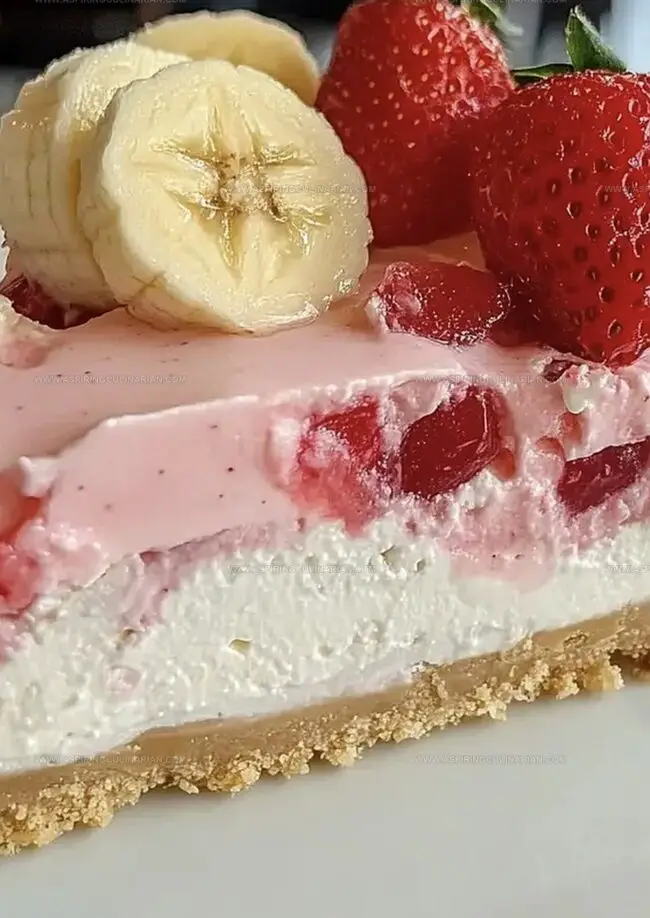 Sweet strawberry banana delight cheesecake blends creamy richness with fruity freshness, creating a dessert paradise. Silky layers of smooth cream cheese and ripe fruit promise indulgent moments that will delight senses and bring pure culinary joy.