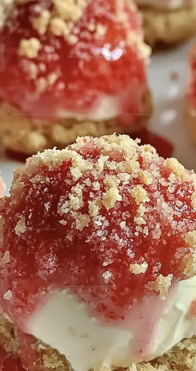 Sweet memories of summer dance through my strawberry cheesecake crunch bites, blending creamy richness with unexpected texture.