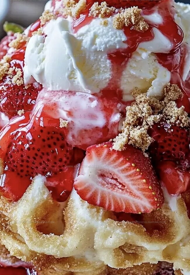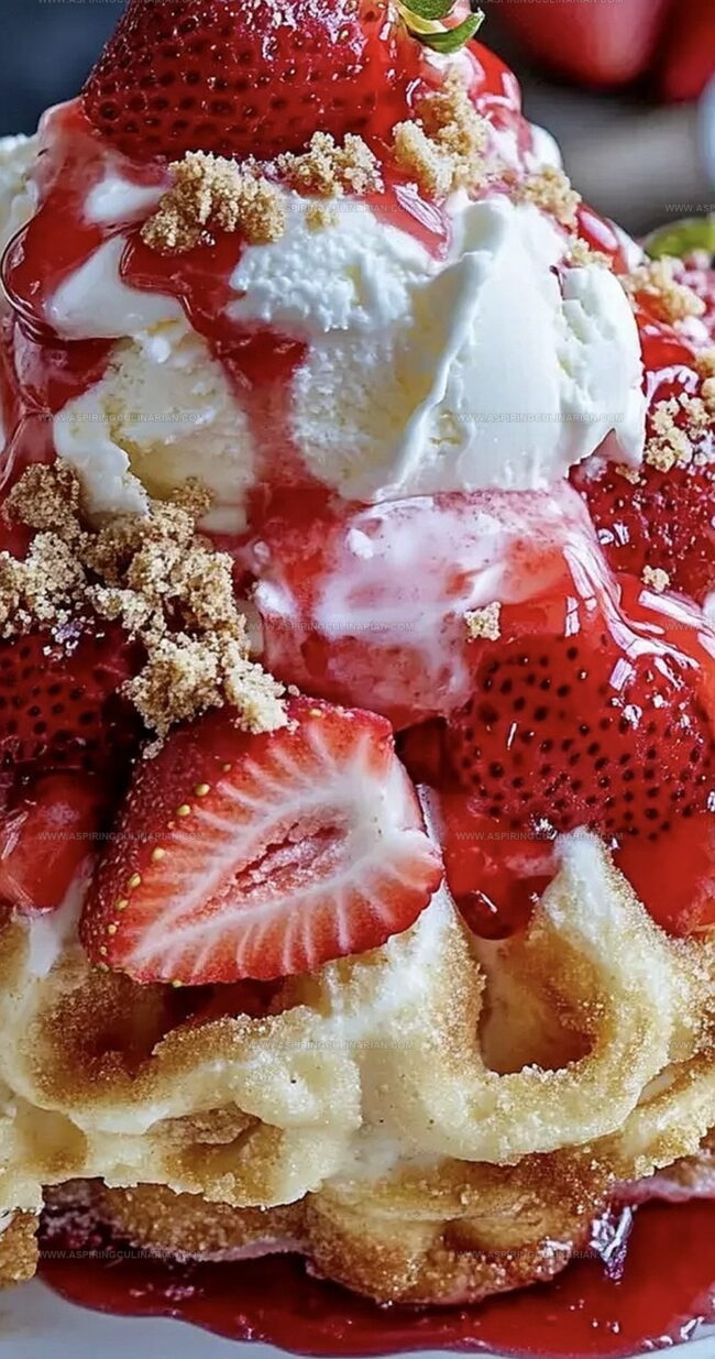 A delightful strawberry cheesecake funnel cake sundae combines carnival nostalgia with decadent dessert magic.
