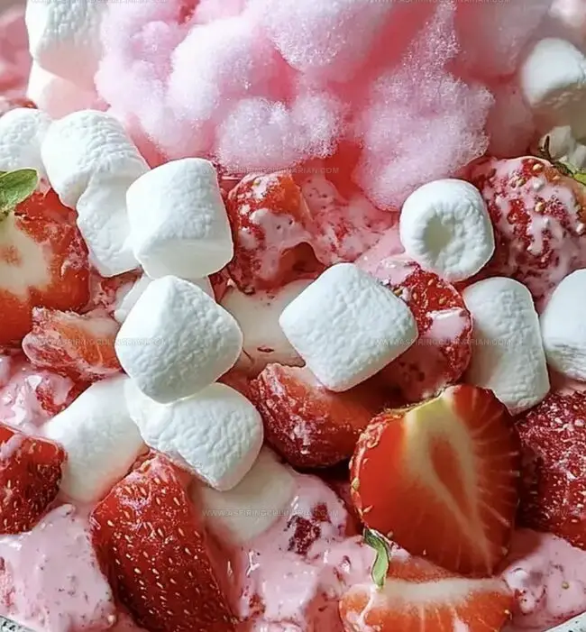 Sweet summer dreams come alive in this Strawberry Cotton Candy Salad, blending whimsical nostalgia with fresh fruity delight. Delicate strawberries and dreamy cotton candy swirl together, creating a playful dessert that melts hearts and delights senses.