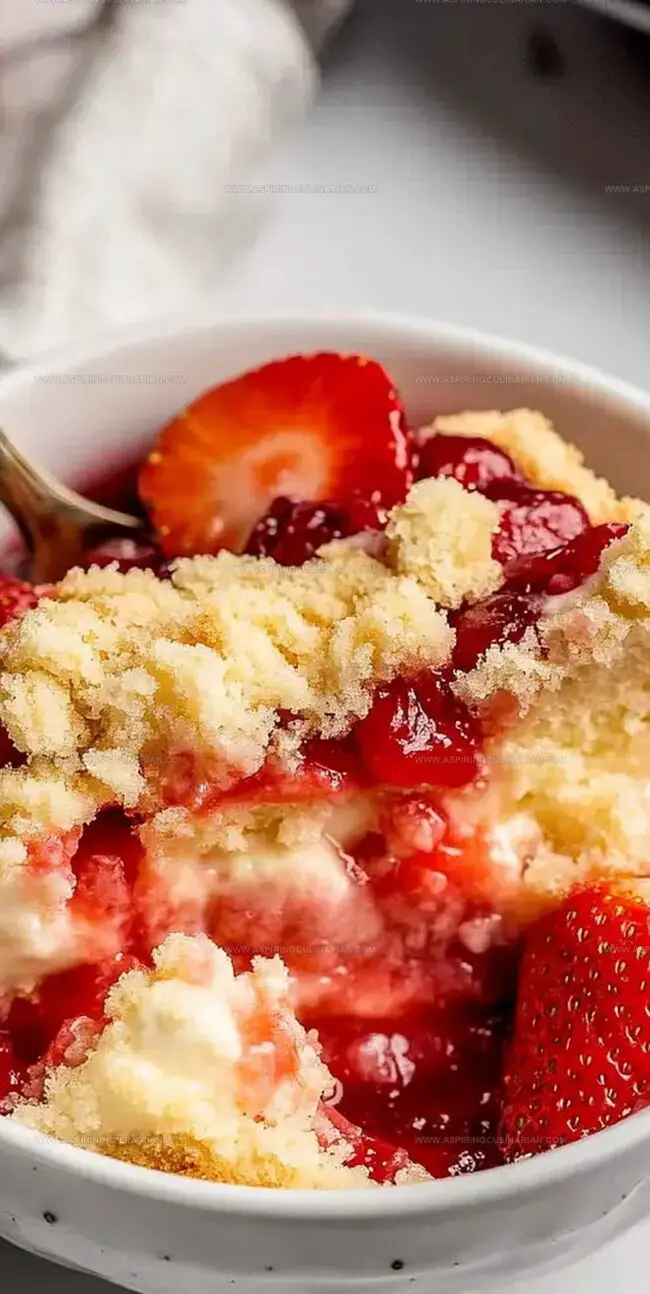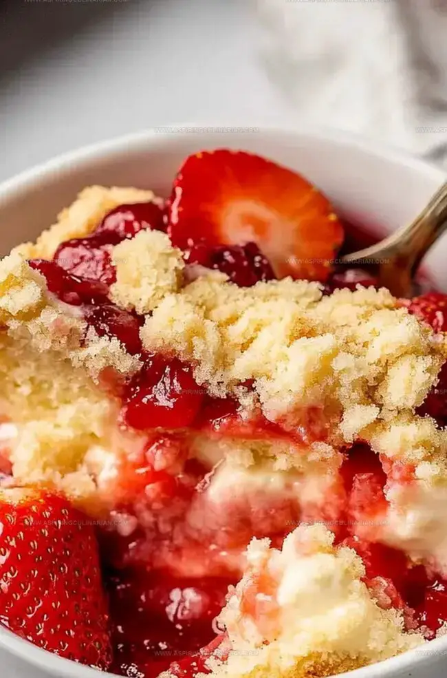 Sweet summer berries burst with flavor in this mouthwatering strawberry dump cake recipe that promises delightful simplicity.