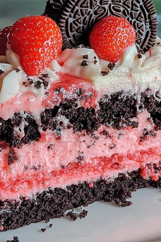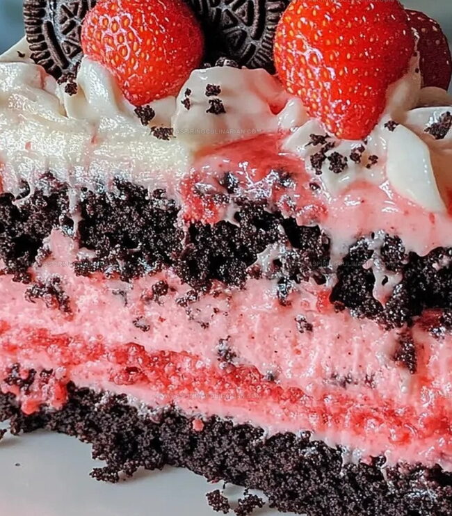 Indulgent Strawberry Oreo Cake blends creamy layers of crushed Oreos with fresh strawberry goodness. Sweet chocolate cookie crumbles and luscious strawberry cream create a delightful dessert you’ll crave again and again.