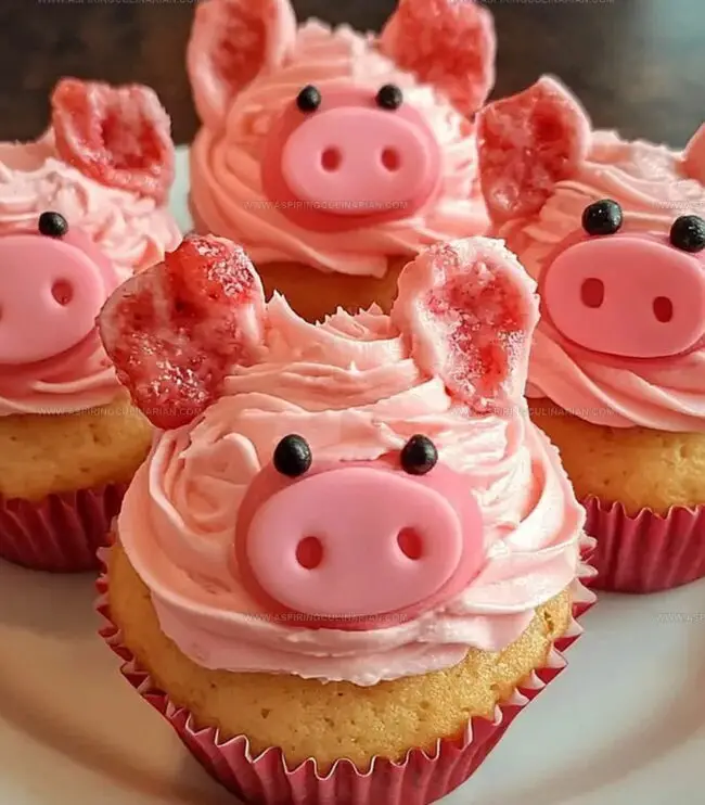 Sweet strawberry piggy cupcakes dance with whimsical charm, bringing playful farm-inspired dessert magic to kitchen counters. Pink frosted piggies peek out with adorable character, inviting bakers to create delightful treats that spark joy and delight.