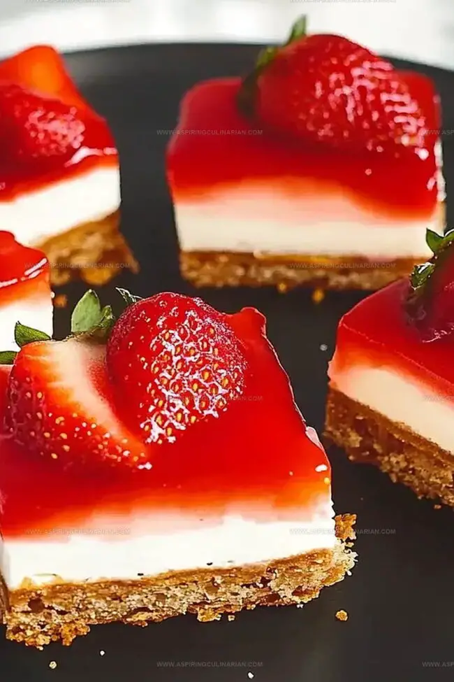 The vibrant strawberry gelatin topping adds a brilliant pop of color and fresh flavor to every bite.