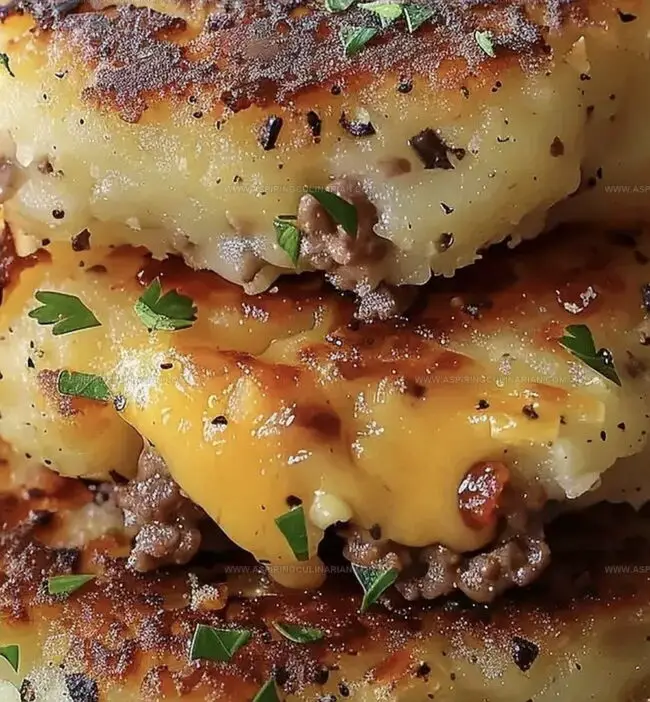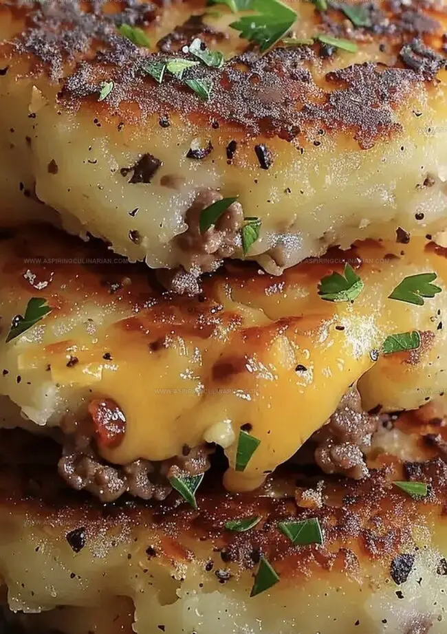 Optional garnishes include:Enjoy these crispy, cheesy, beef-filled potato cakes while they’re hot and irresistible!